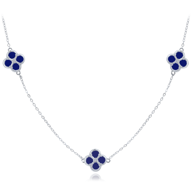 MINET Dětský stříbrný náhrdelník KYTIČKA se světle modrými zirkony