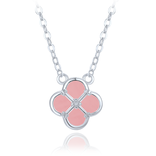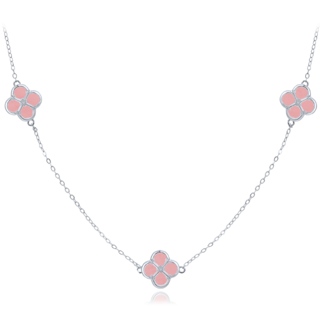 MINET Dětský stříbrný náhrdelník KYTIČKA s růžovými zirkony