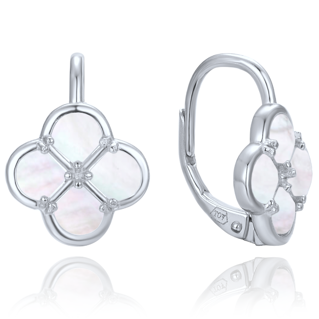 MINET Svítící bílé dětské stříbrné náušnice KOČIČKY
