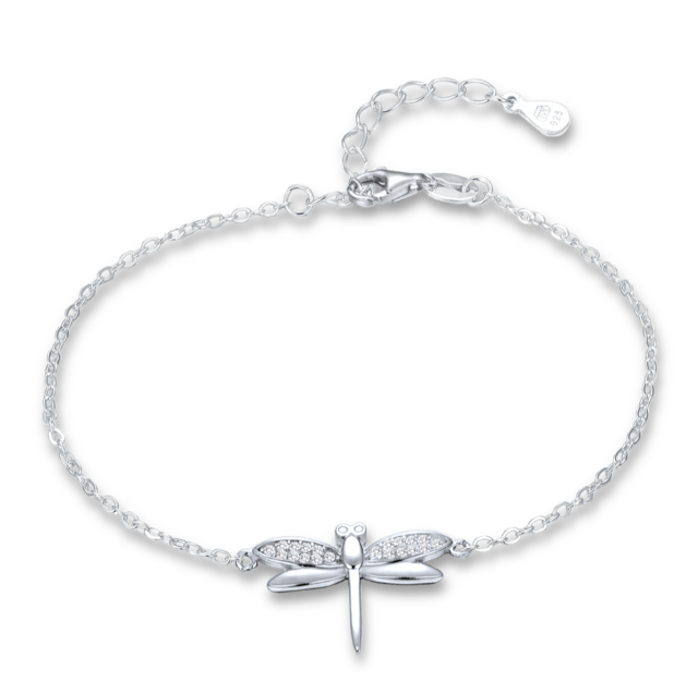 MINET Stříbrný náramek vážka s bílým zirkonem