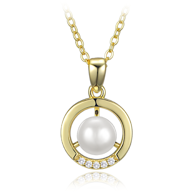 MINET Elegantní pozlacený stříbrný náhrdelník kroužek s perlou a zirkonem