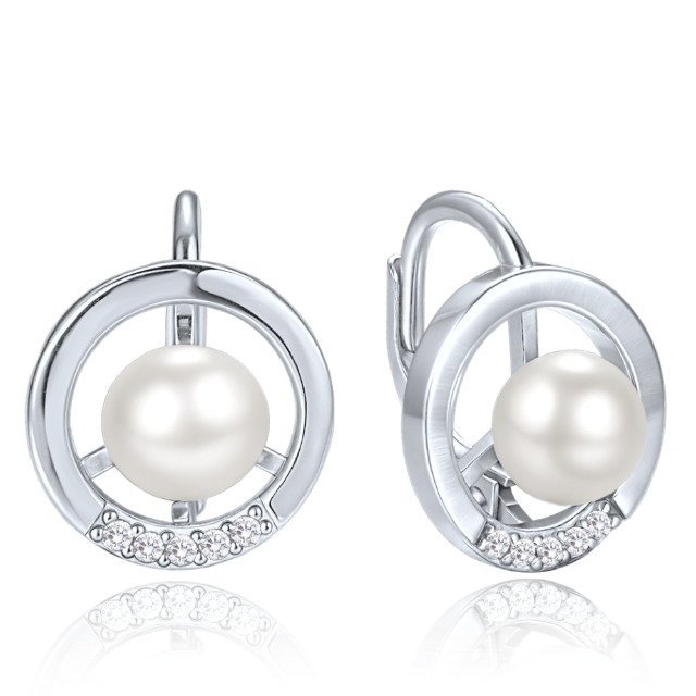 MINET Stříbrné náušnice s bílou perlou