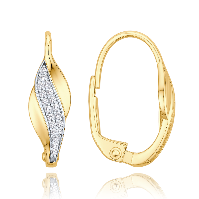 MINET Luxusní zlaté náušnice křížky s bílými zirkony Au 585/1000 1,10g