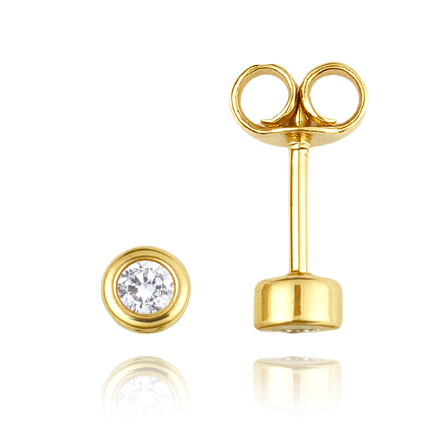 MINET Elegantní zlaté náušnice kolečka na šroubek s bílými zirkony Au 585/1000 1,60g