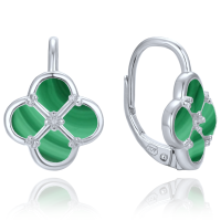MINET Stříbrné náušnice čtyřlístky s malachitem