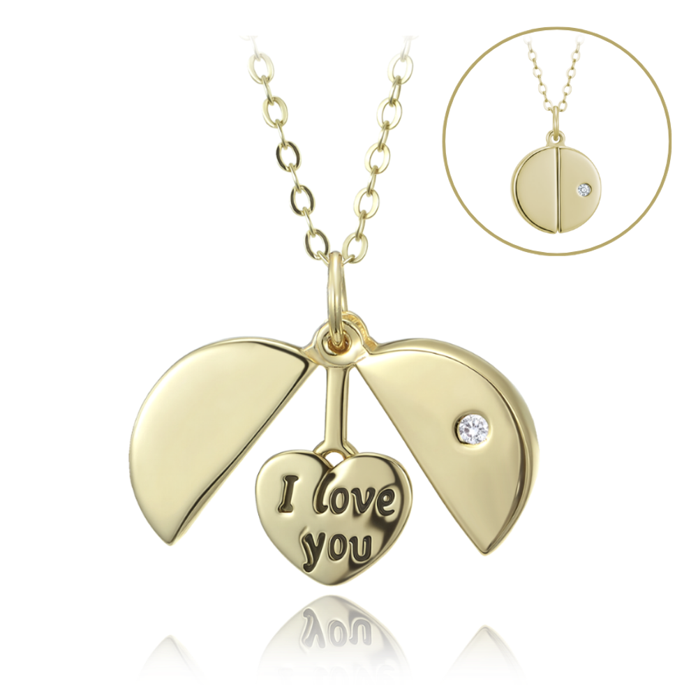 MINET Pozlacený stříbrný náhrdelník s otevíracím přívěskem a srdíčkem s nápisem "I love you"