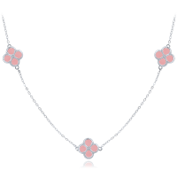 MINET Stříbrný náhrdelník čtyřlístky s jadeity