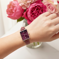 MINET Stříbrno-vínové dámské hodinky SIENA s vínovým koženým řemínkem