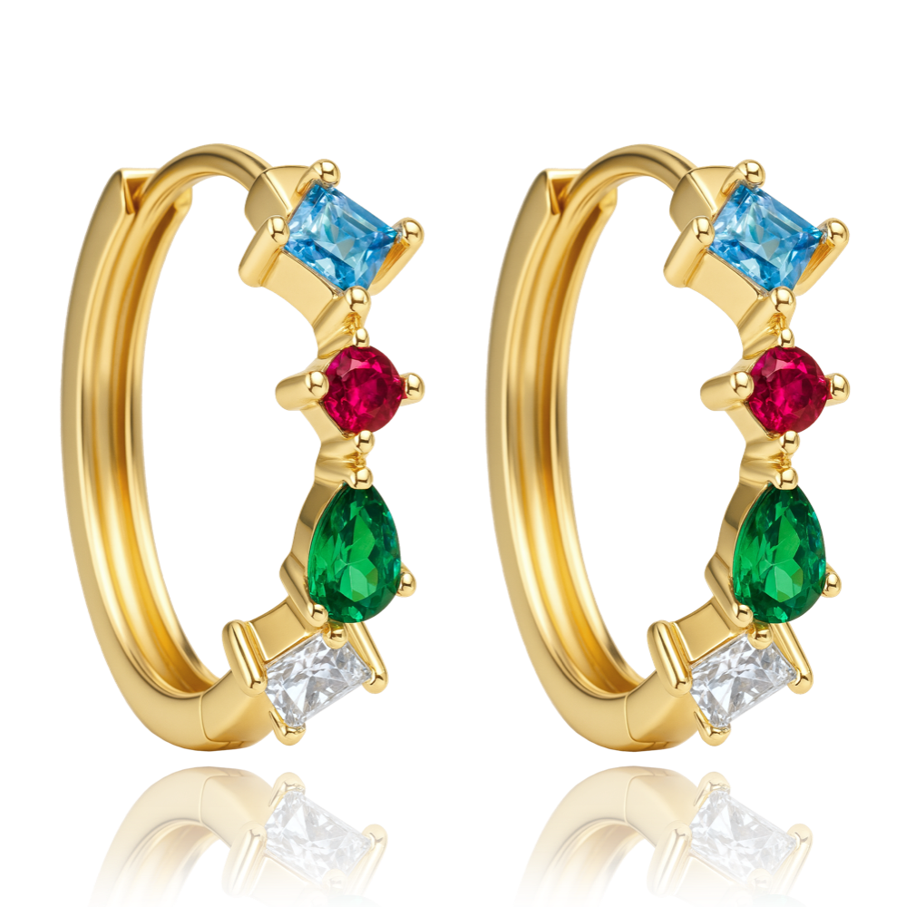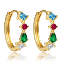 MINET Elegantní zlaté náušnice s bílými, červenými, modrými a zelenými zirkony Au 585/1000 1,65g