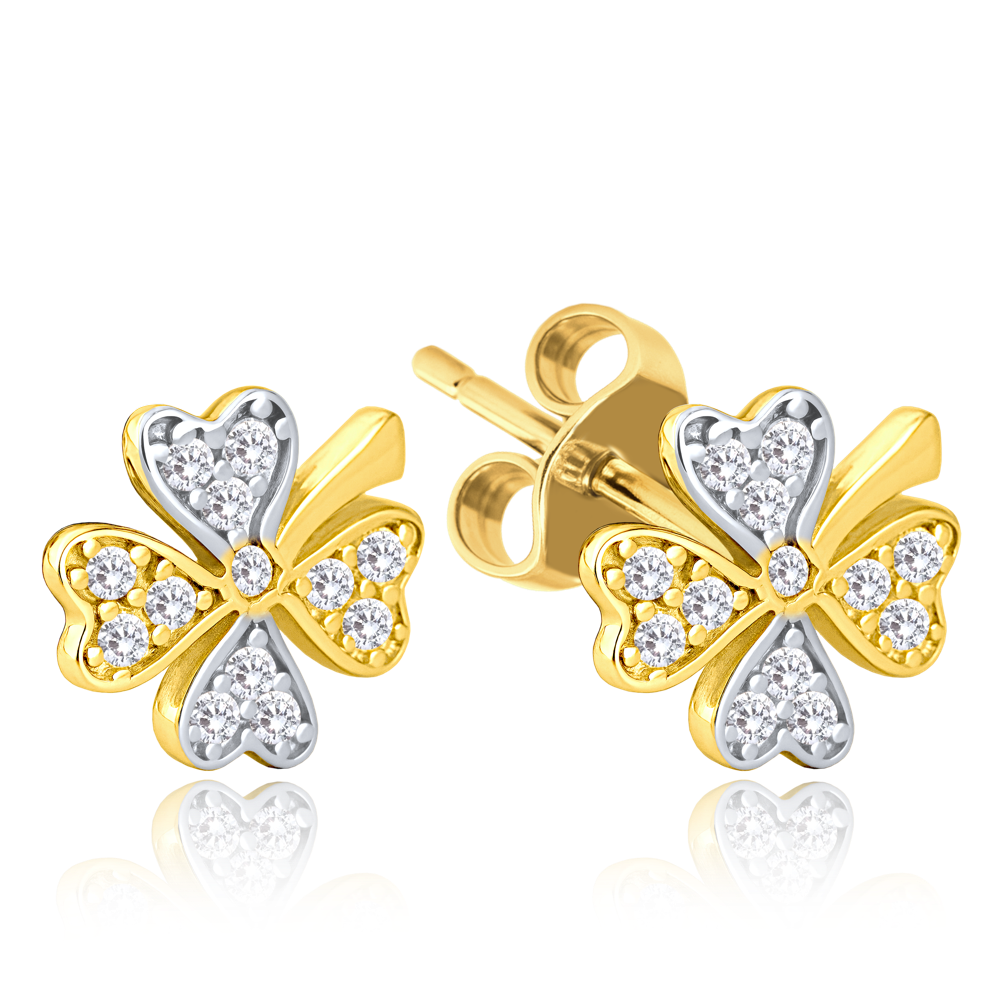 MINET Zlaté náušnice čtyřlístky s bílými zirkony Au 585/1000 1,70g