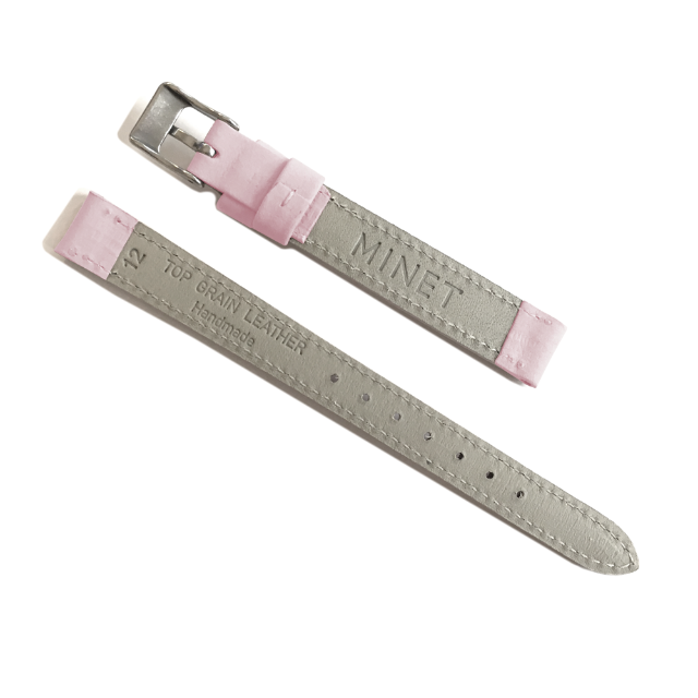 Nubuk, neboli jemná kartáčovaná kůže, připomíná na dotek semiš a přirozeně tak dotváří něžný vzhled dámských hodinek. Navíc, španělská kůže "Top Grain", ze které je tento řemínek MINET vyroben, bývá označována za tu nejkvalitnější kůži na světě.