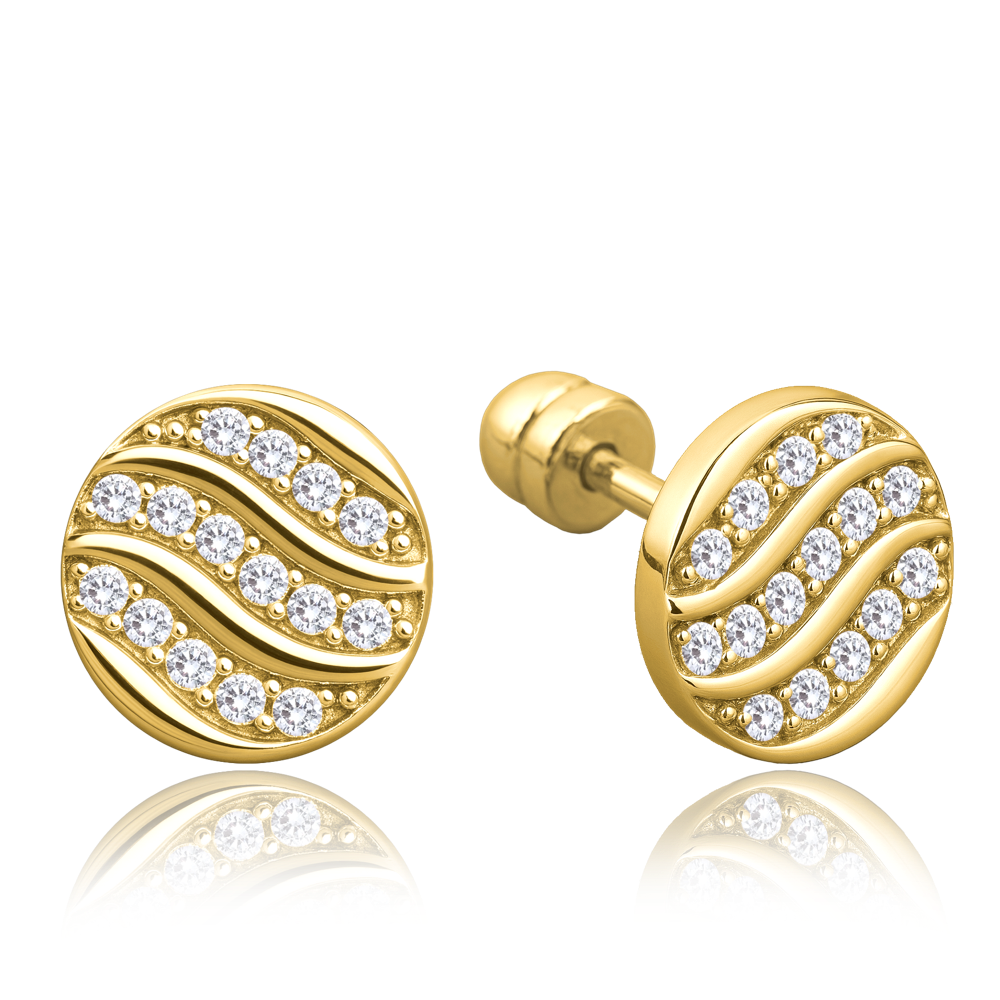 MINET Elegantní zlaté náušnice kolečka na šroubek s bílými zirkony Au 585/1000 1,60g