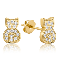 MINET Zlaté náušnice kočky s bílými zirkony Au 585/1000 1,20g