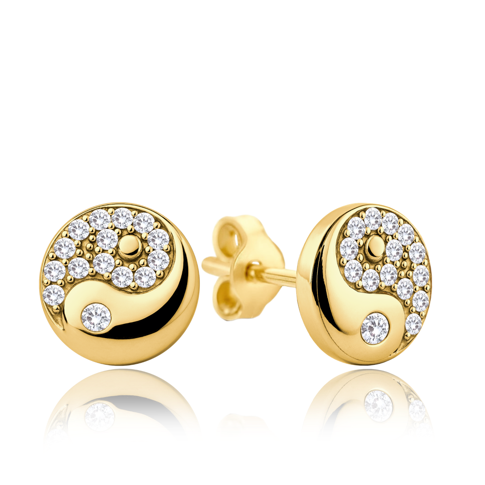 MINET Zlaté náušnice kolečka s bílými zirkony Au 585/1000 1,40g