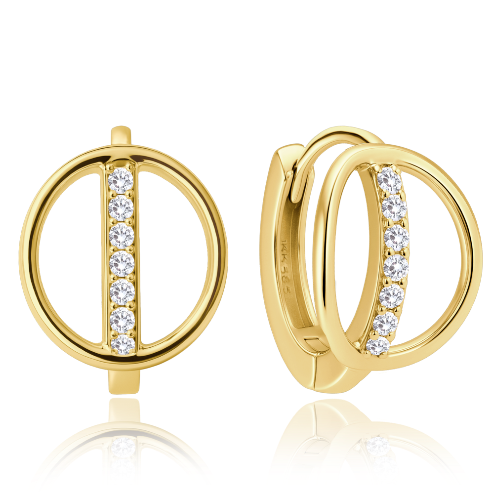 MINET Elegantní zlaté náušnice s bílými zirkony Au 585/1000 1,75g