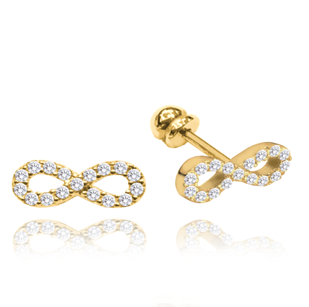 MINET Zlaté náušnice nekonečna na šroubek s bílými zirkony Au 585/1000 1,25g