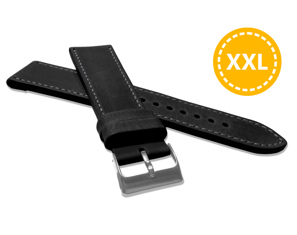 LAVVU XXL Prodloužený prošitý černý řemínek SPORT z luxusní kůže Top Grain - 22 XXL