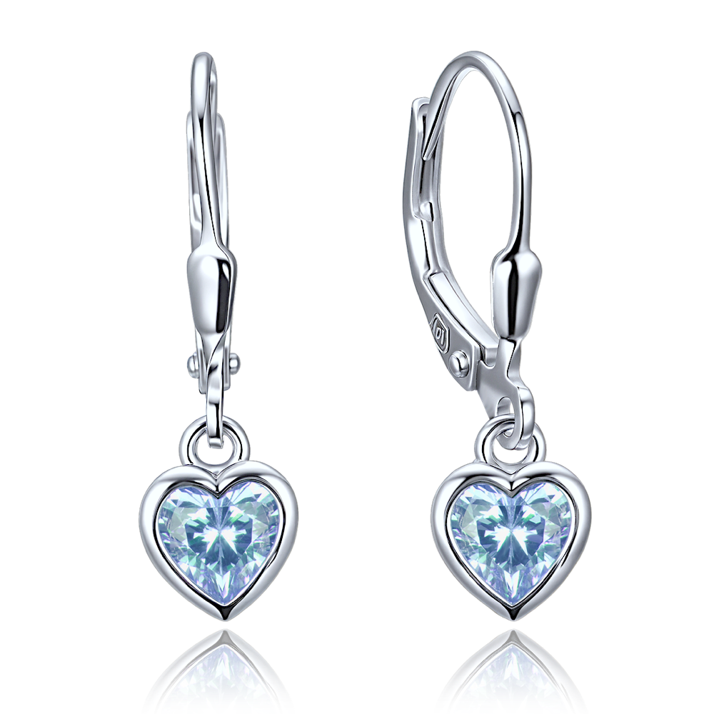 MINET Decentní stříbrné náušnice srdce se světle modrými zirkony