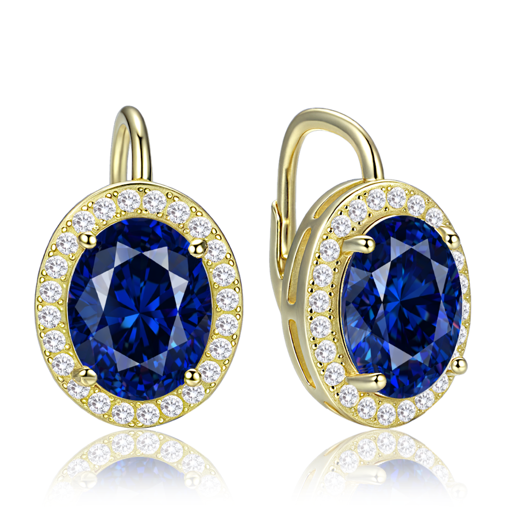 MINET Luxusní pozlacené stříbrné náušnice s modrými a bílými zirkony
