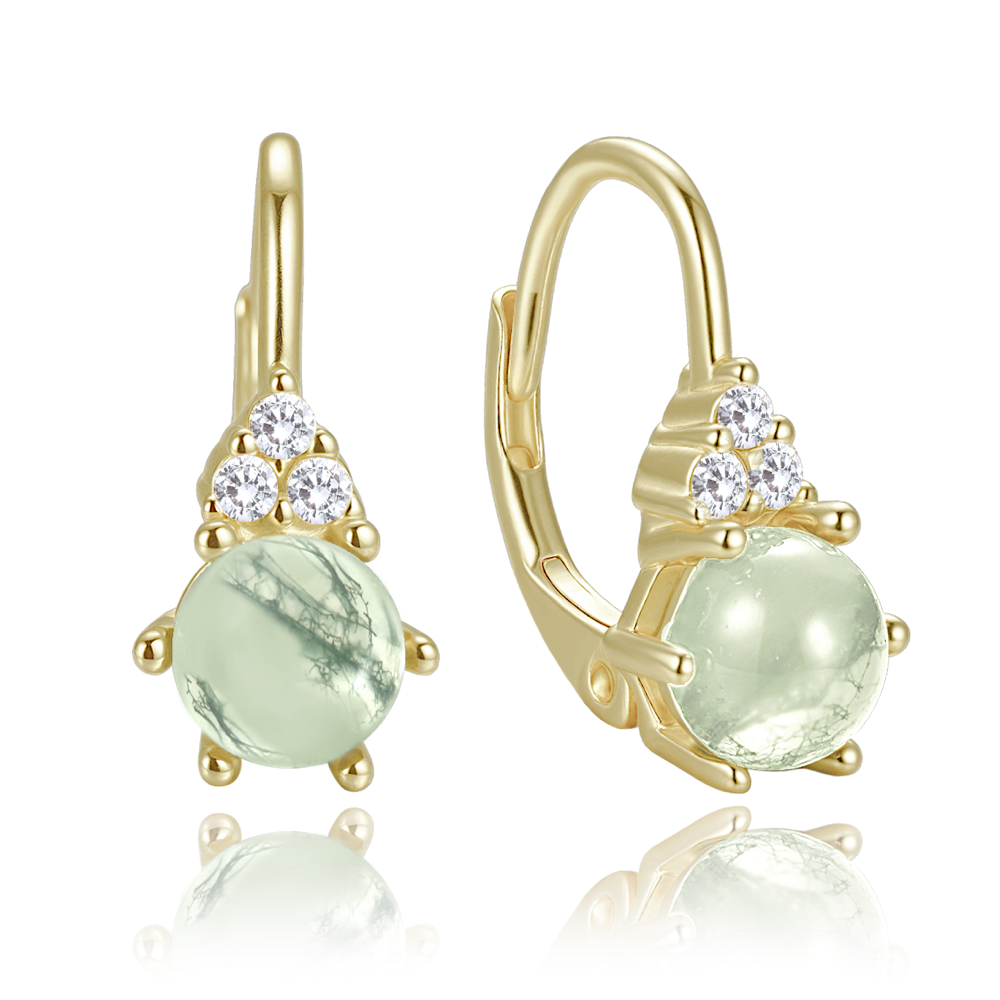 MINET Elegantní pozlacené stříbrné náušnice se světlým mechovým achátem a zirkony