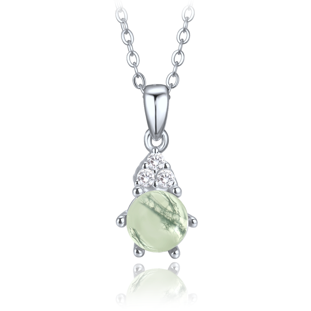 MINET Elegantní stříbrný náhrdelník se světlým mechovým achátem a zirkonem