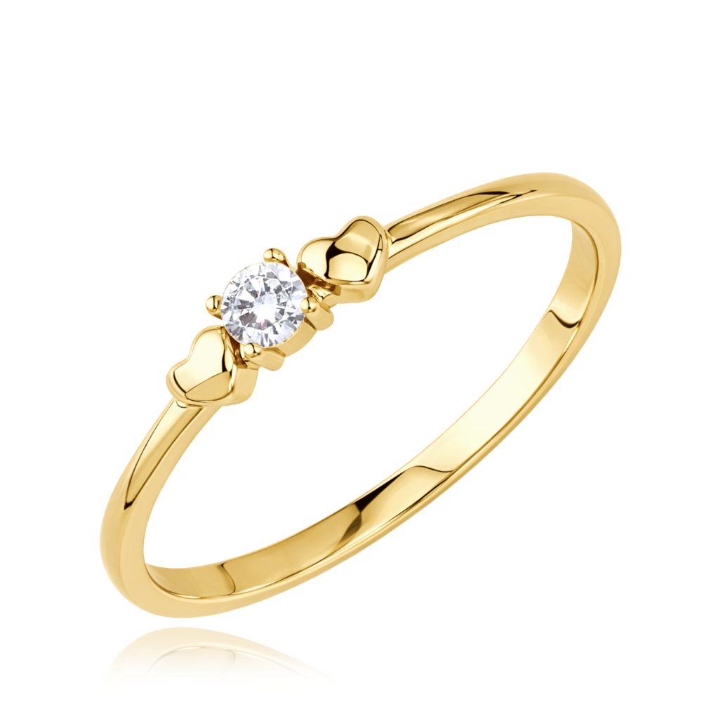 MINET Decentní zlatý prsten se zirkonem a srdíčky Au 585/1000 vel. 53 - 1,35g