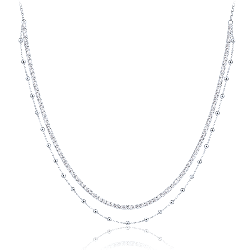 MINET Elegantní dvojitý stříbrný náhrdelník s bílým zirkonem