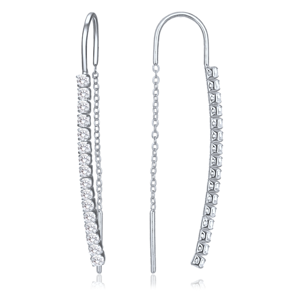 MINET Elegantní stříbrné závěsné náušnice s bílými zirkony
