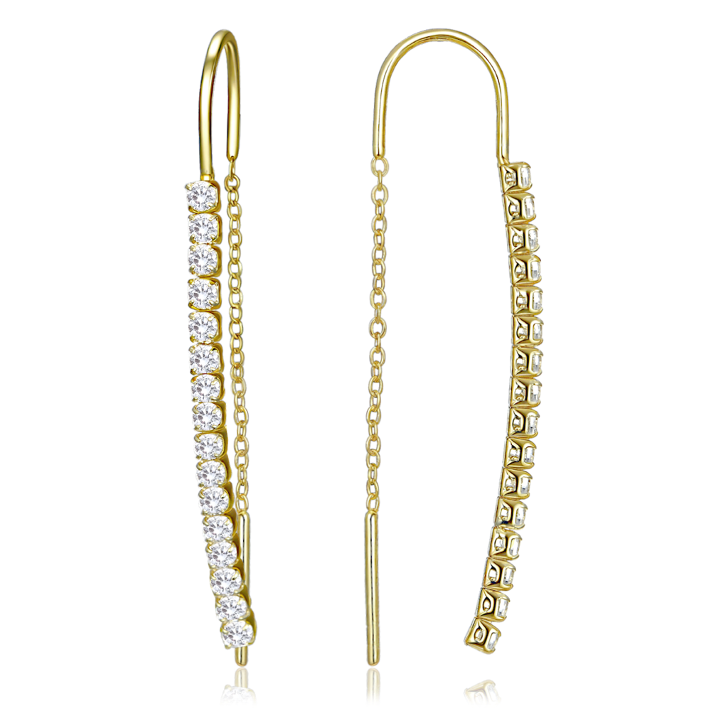 MINET Elegantní pozlacené stříbrné závěsné náušnice s bílými zirkony