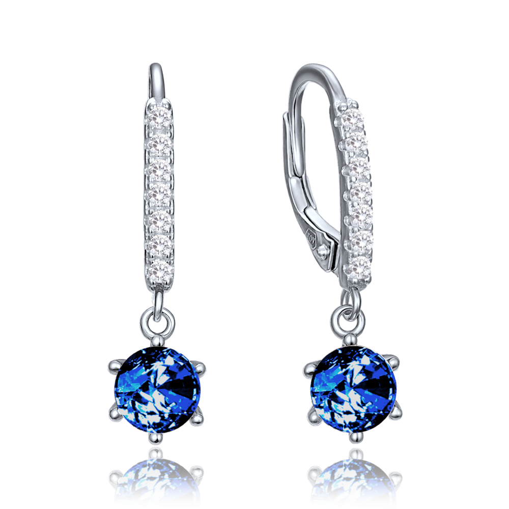 Náušnice ze stříbra Ag 925/1000 s rhodiovaným povrchem si zachovávají lesk i barvu. Tmavě modré a bílé zirkony dodávají výrazný třpyt. MINET je česká značka zaměřená na kvalitní hodinky a šperky ze stříbra a zlata.