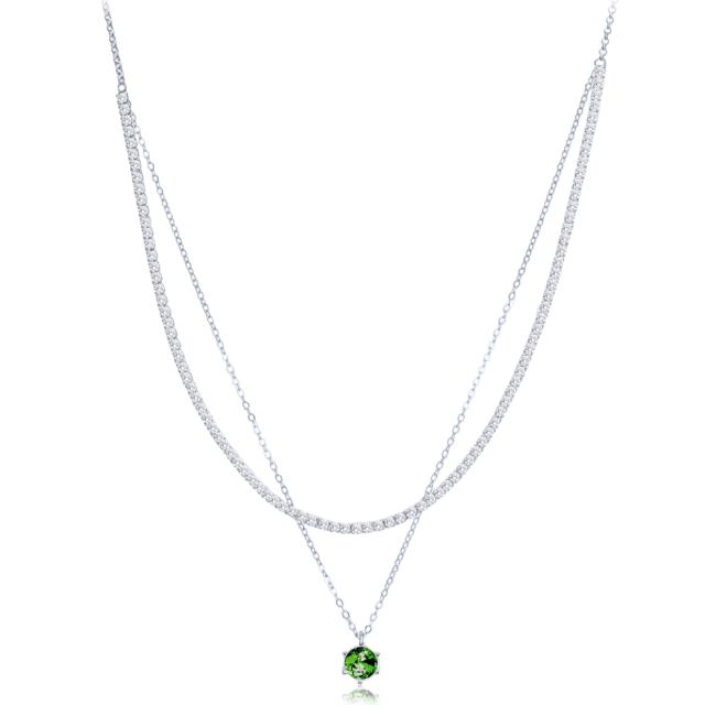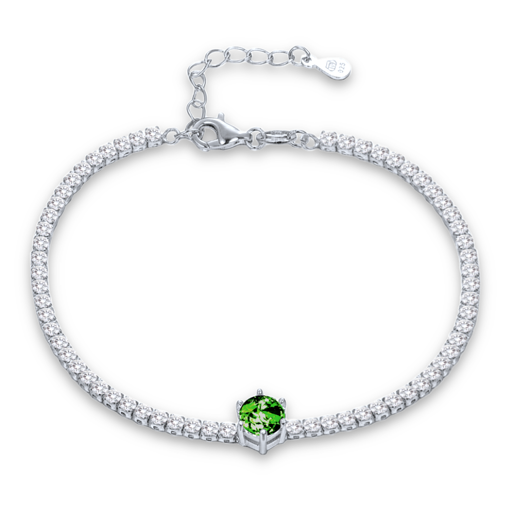 Náramek ze stříbra Ag 925/1000 s rhodiovaným povrchem si zachovává lesk. Zelený a bílý zirkon dodávají jemný třpyt. MINET je česká značka zaměřená na kvalitní hodinky a šperky ze stříbra a zlata.