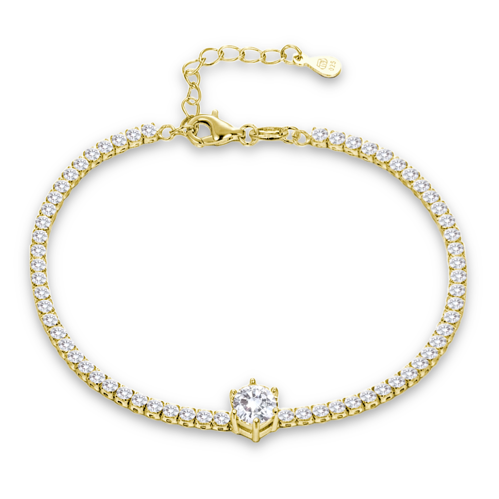 Náramek ze stříbra Ag 925/1000 s pozlacením a e-coatingem si zachovává lesk. Bílý zirkon dodává jemný třpyt. MINET je česká značka zaměřená na kvalitní hodinky a šperky ze stříbra a zlata.