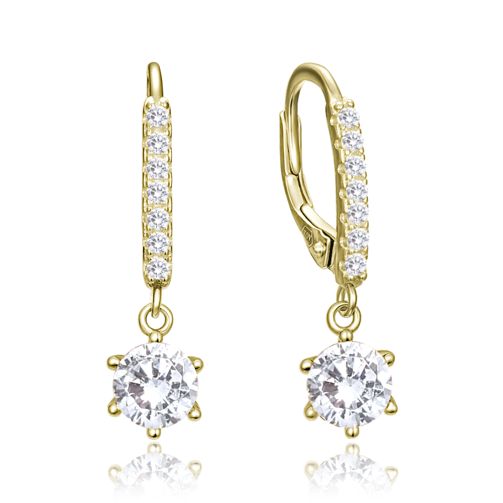 Náušnice ze stříbra Ag 925/1000 s pozlacením a e-coatingem si zachovávají lesk i barvu. Bílé zirkony dodávají výrazný třpyt. MINET je česká značka zaměřená na kvalitní hodinky a šperky ze stříbra a zlata.