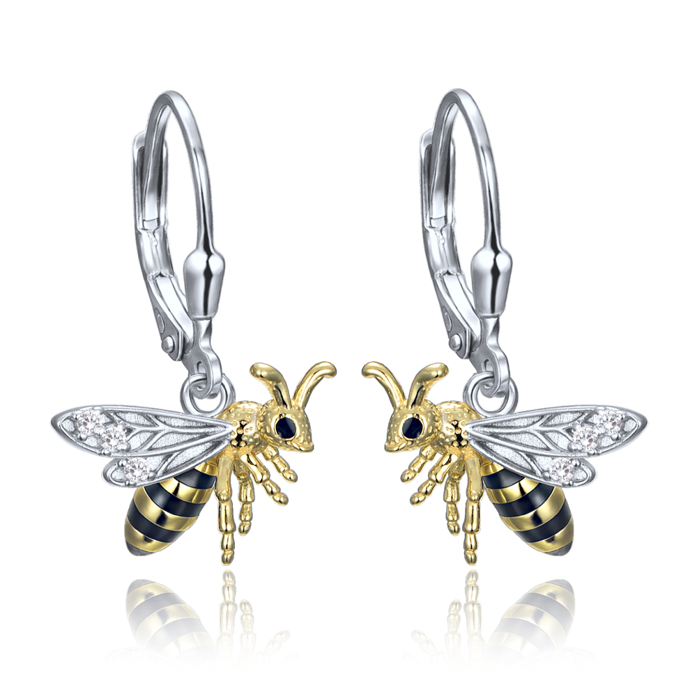 Stříbrné náušnice MINET s motivem včelky jsou vyrobeny ze stříbra Ag 925/1000 s kombinací povrchů rhodium, e-coating a gold plating. Zirkony dodávají výrazný třpyt a hravý motiv včelky přitahuje pozornost. MINET je česká značka zaměřená na kvalitní hodinky a šperky ze stříbra a zlata.