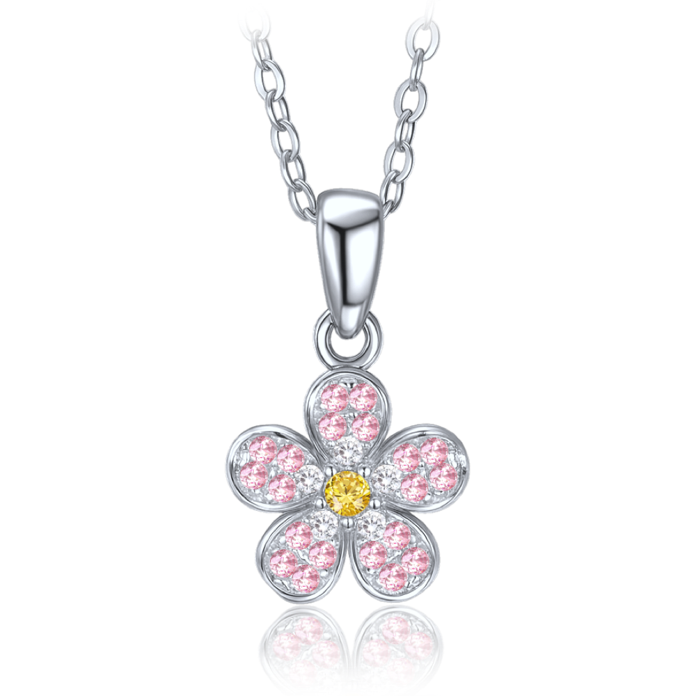 Dětský náhrdelník MINET s motivem kytičky je vyroben ze stříbra Ag 925/1000 s rhodiovaným povrchem. Barevné zirkony dodávají jemný třpyt a hravý design, který si děti zamilují. MINET je česká značka zaměřená na kvalitní hodinky a šperky ze stříbra a zlata.
