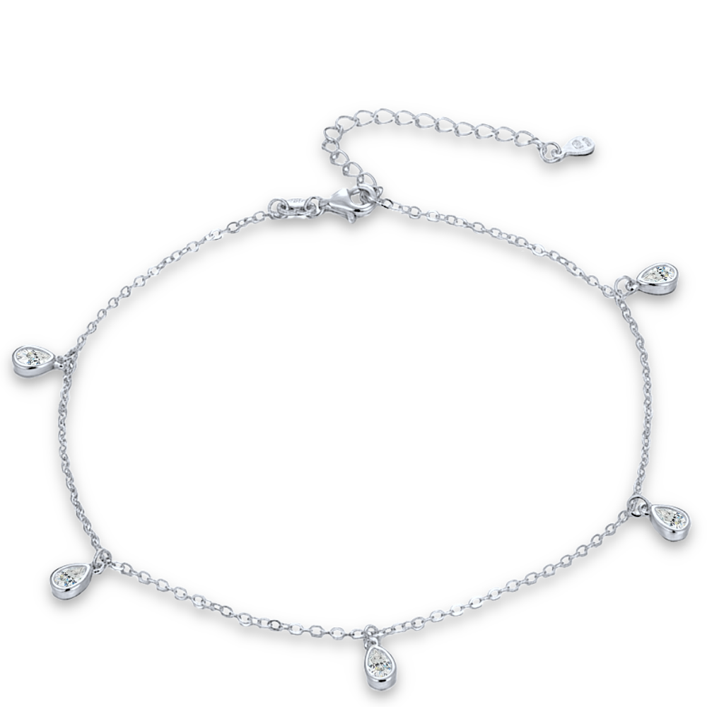 MINET Stříbrný řetízek na kotník s bílým zirkonem