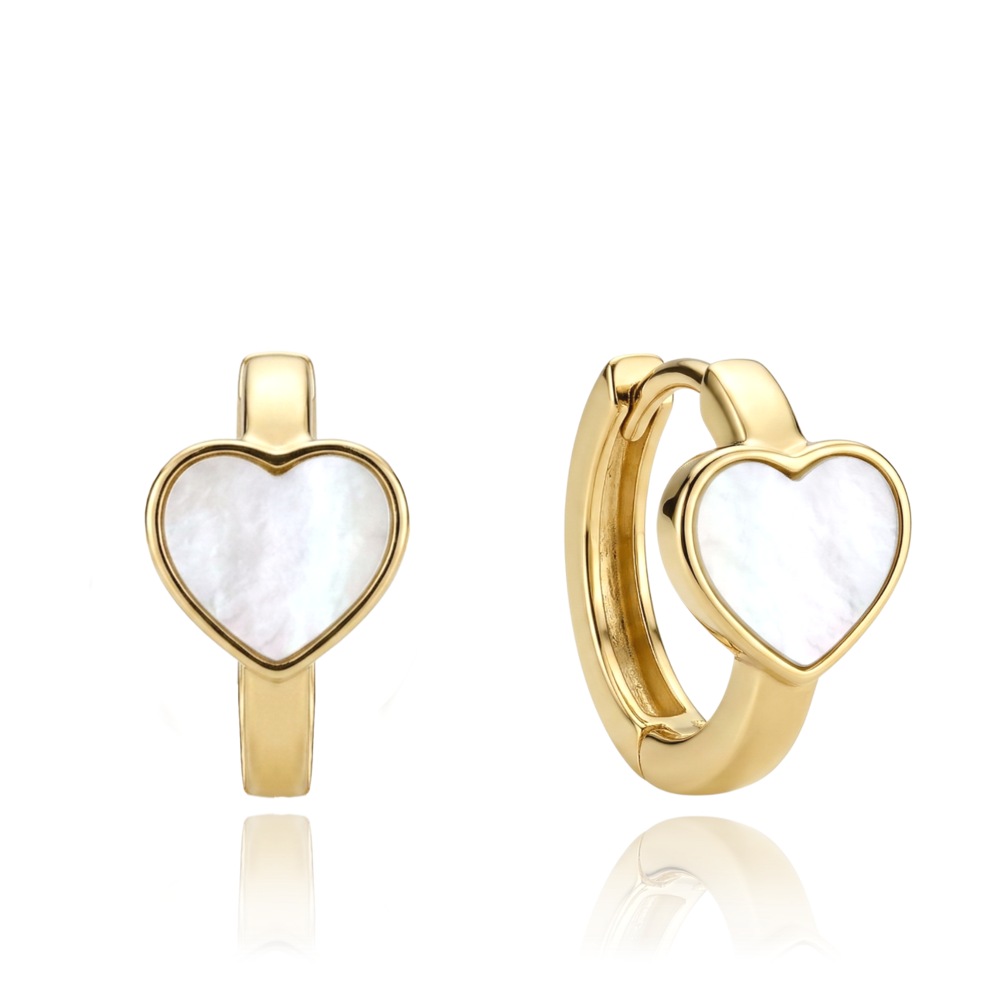 MINET Zlaté náušnice srdíčka s bílou perletí Au 585/1000 2,45g
