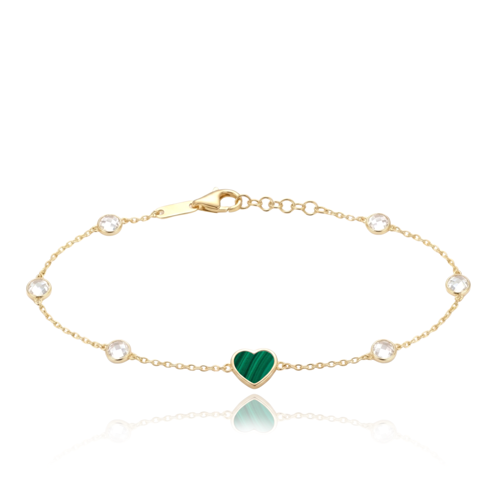 MINET Zlatý náramek srdíčko se zeleným malachitem a bílými zirkony Au 585/1000 1,65g