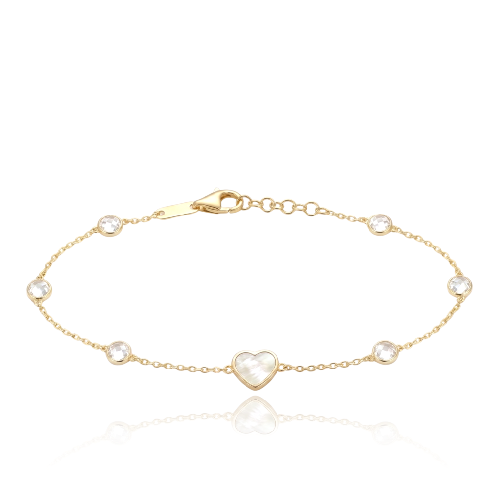 MINET Zlatý náramek srdíčko s bílou perletí a bílými zirkony Au 585/1000 1,65g