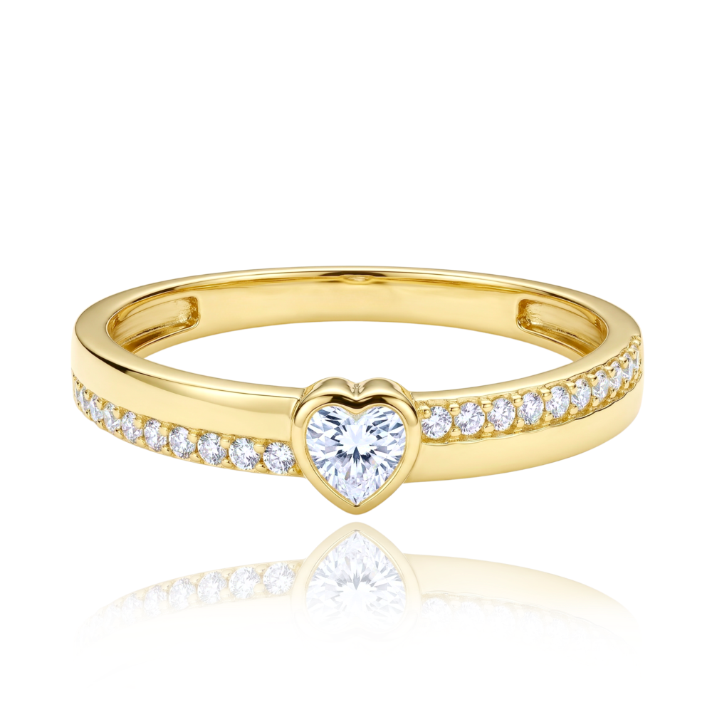 MINET Zlatý prsten srdíčko s bílými zirkony Au 585/1000 vel. 58 - 1,35g