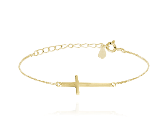 MINET Pozlacený stříbrný náhrdelník KŘÍŽ ležatý