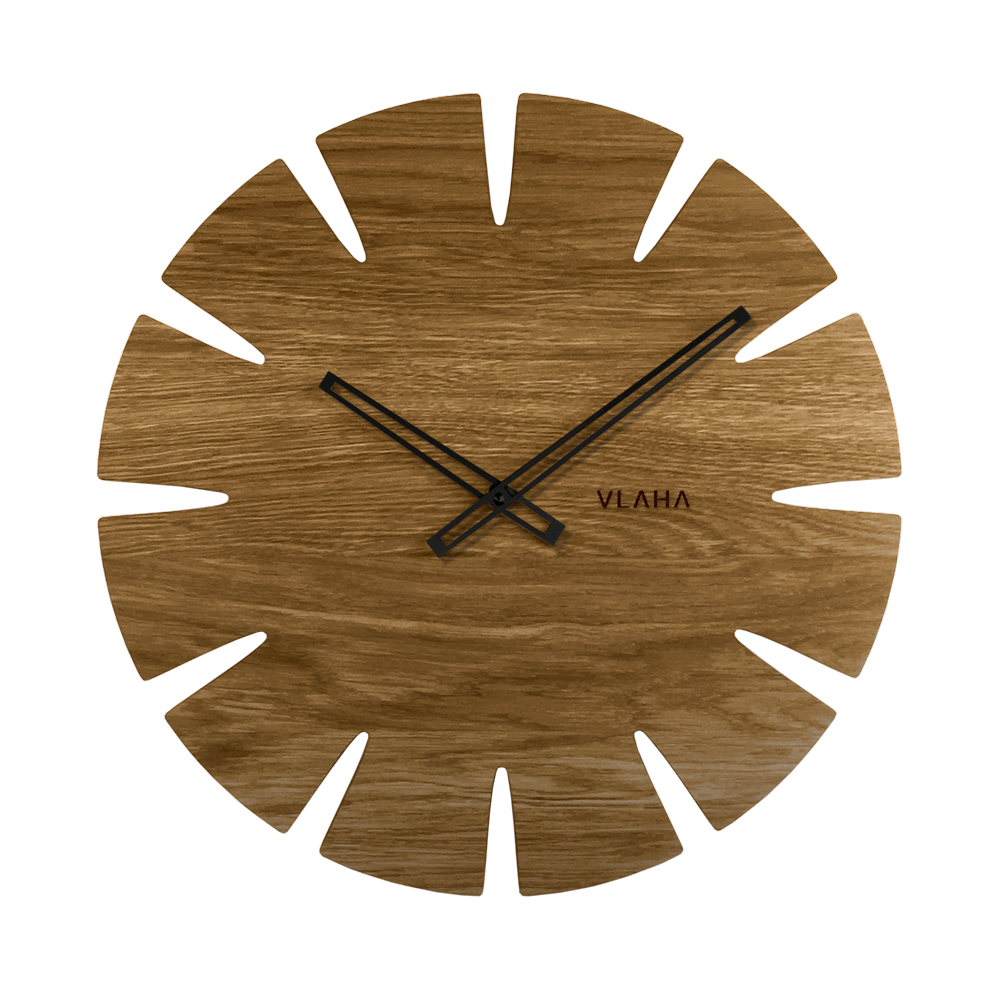 Vůně dubového dřeva a přírodních olejů se rozline ve Vašem bytě, jakmile na stěnu pověsíte nové dřevěné hodiny VLAHA.