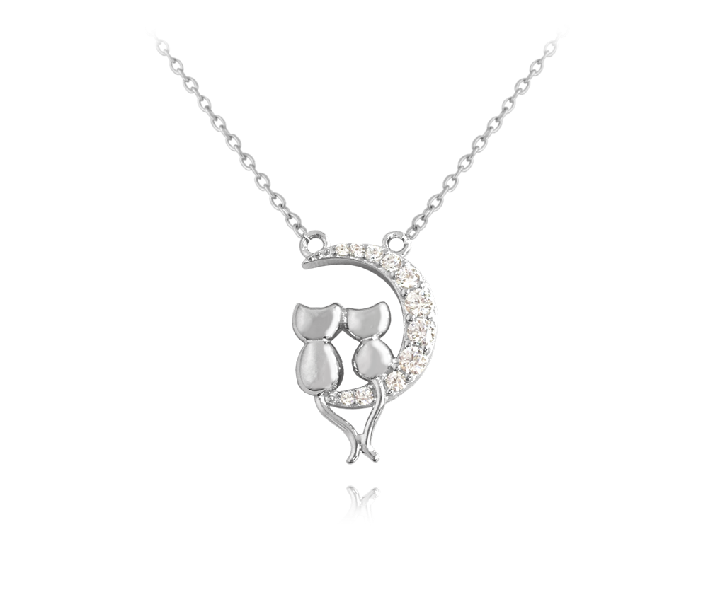 MINET Stříbrný náhrdelník KOČKY na bílém měsíci