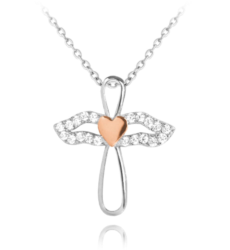 MINET Třpytivý stříbrný náhrdelník ANDĚL s růžovým srdíčkem