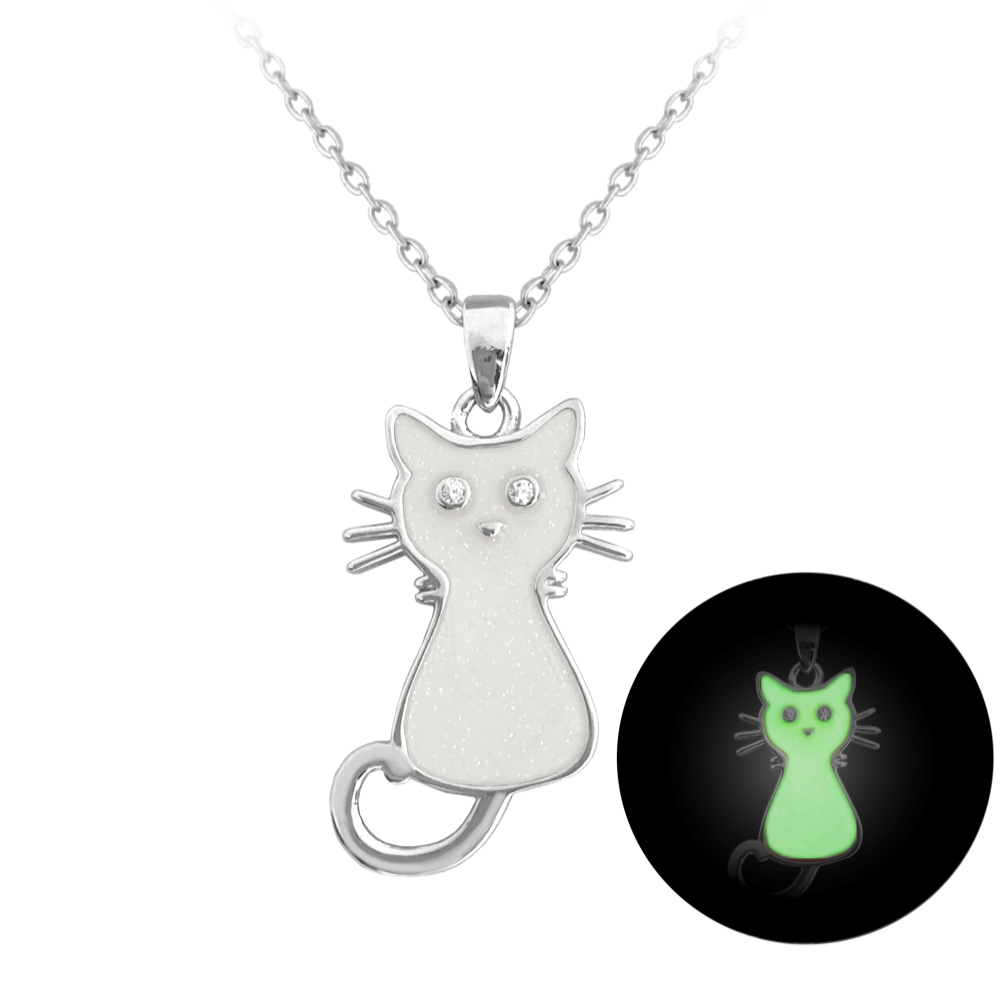 MINET Svítící bílý dětský stříbrný náhrdelník KOČIČKA