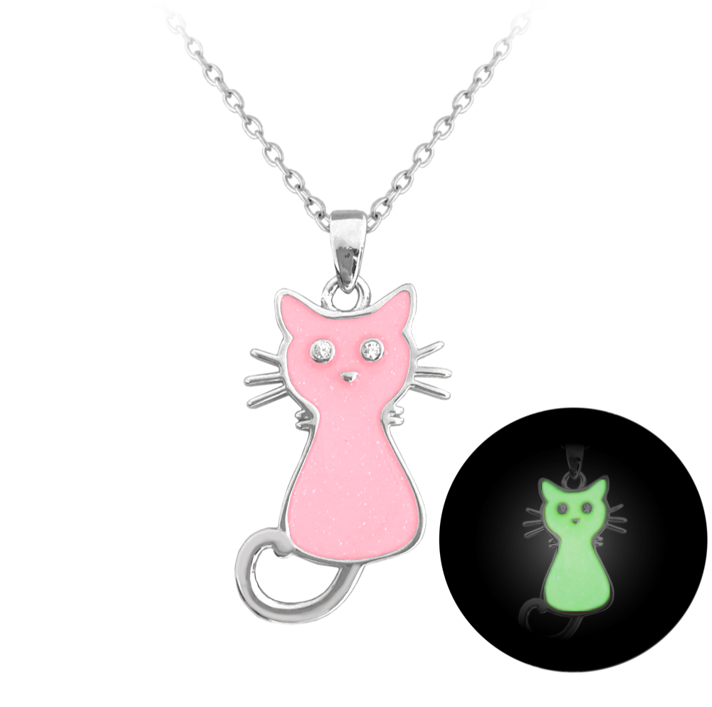 MINET Svítící růžový dětský stříbrný náhrdelník KOČIČKA
