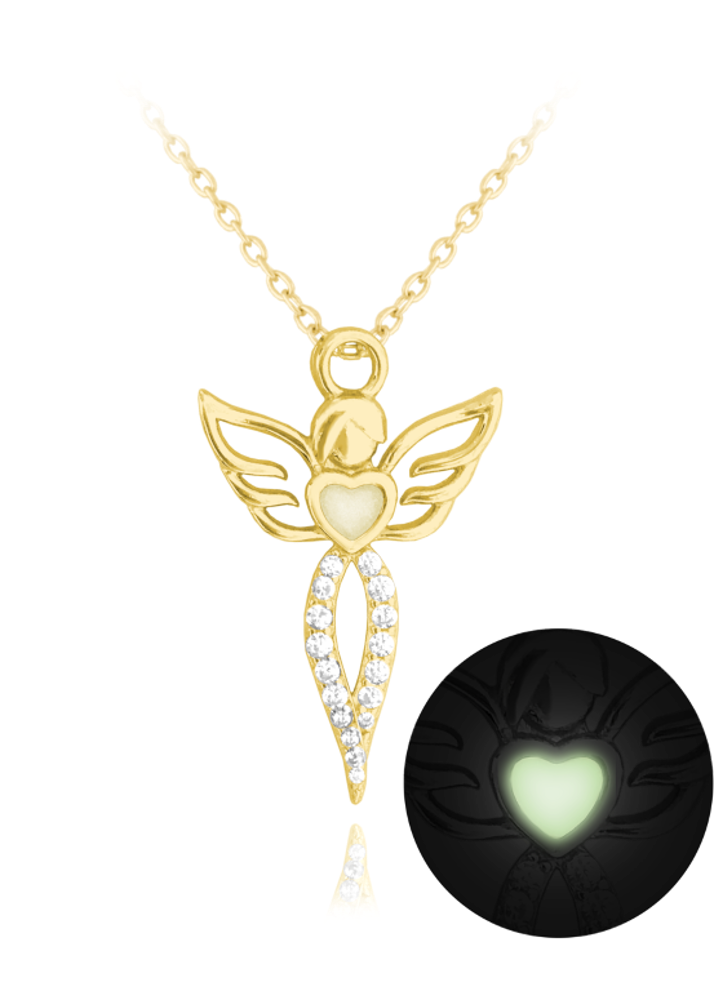 MINET Svítící pozlacený stříbrný náhrdelník ANDĚL s bílými zirkony