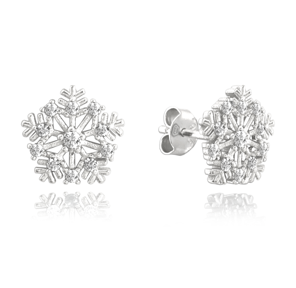 MINET Stříbrné náušnice SNĚHOVÉ VLOČKY s bílými zirkony