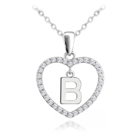 MINET Stříbrný náhrdelník písmeno v srdíčku "B" se zirkony