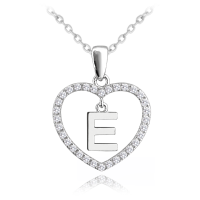 MINET Stříbrný náhrdelník písmeno v srdíčku "E" se zirkony